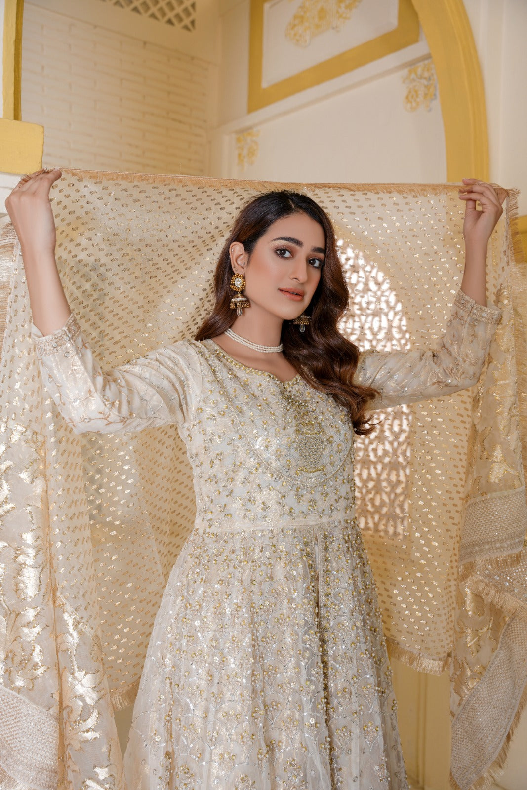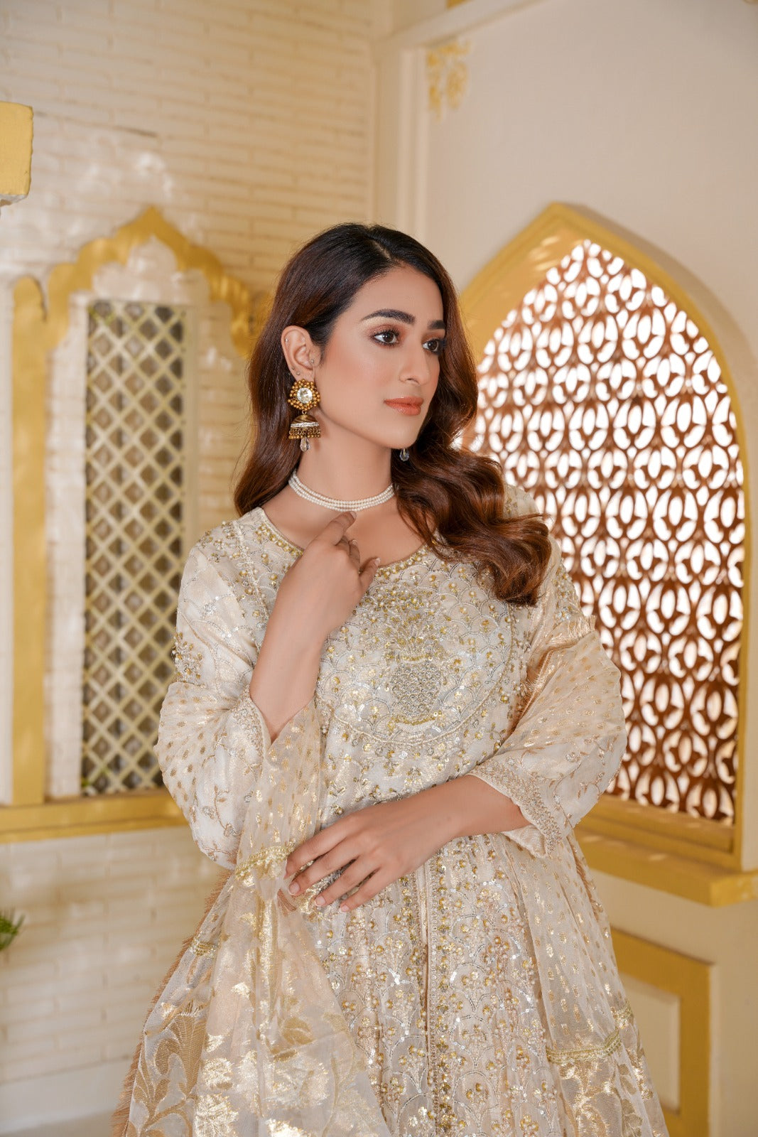 This Mughal-inspired masterpiece will make you feel like a princess straight out of a fairytale. The breath-taking design transports you to a realm of unparalleled elegance. Intricate frescoes, dazzling embellishments, and timeless Mughal motifs come together to create a work of art that defies description. chandan is a testament to the enduring legacy of the Mughal Empire and the exquisite craftsmanship of its artisans.